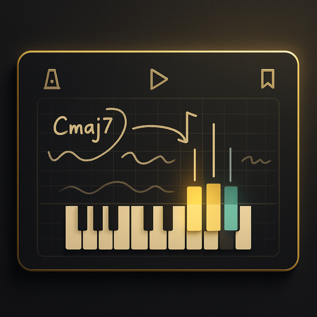 和弦、音阶、节奏提示实时浮现,把复杂乐理转化为清晰可视化。